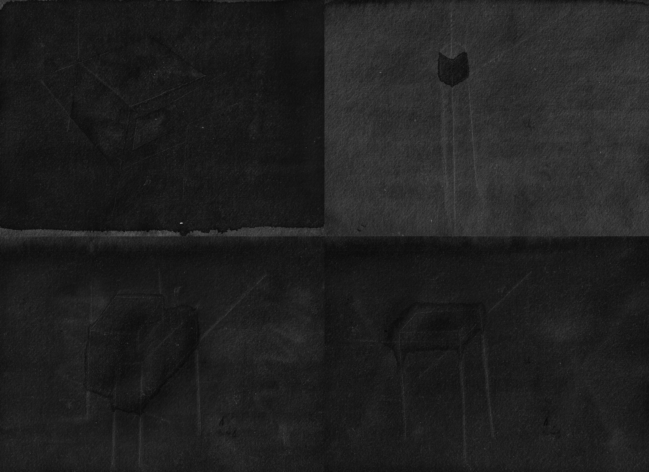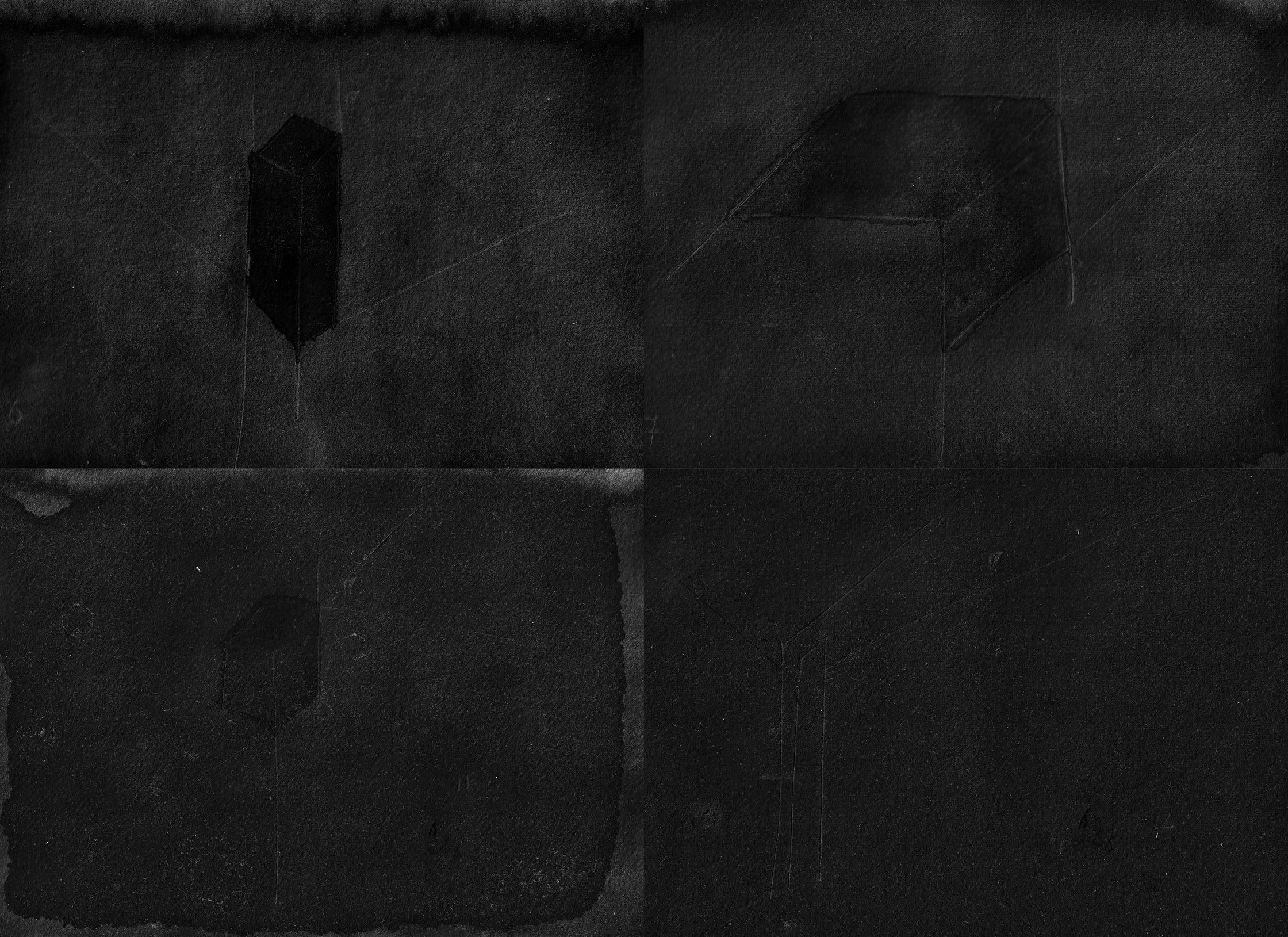 The images shown here are from January 2026. Dark geometries float on textured paper. Text blocks compress language into visual density. What emerges is neither purely visual nor purely literary, but something else entirely: a meteorology of being.